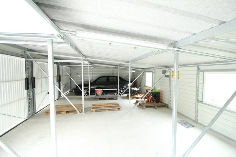 Der Mietgegenstand „Garage“ besteht aus einem Betonboden, einer Stahlformrohrkonstruktion mit Wänden und einem Dach aus ungedämmtem Trapezblech mit jeweils einem Kipptor und einem Beleuchtungskörper. Je Garagenblock sind vier nicht voneinander abgetrennte Garagenplätze situiert und je Garagenblock sind mind. 2 Stk. 230V Schuko-Steckdosen vorhanden.